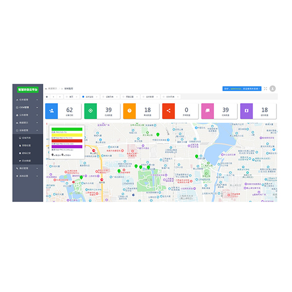18:賬號(hào)名下有多少臺(tái)設(shè)備,在線多少,離線多少,異常多少。超標(biāo)多少,就是在線率統(tǒng)計(jì),離線率統(tǒng)計(jì),異常率統(tǒng)計(jì)。環(huán)境污染統(tǒng)計(jì)。